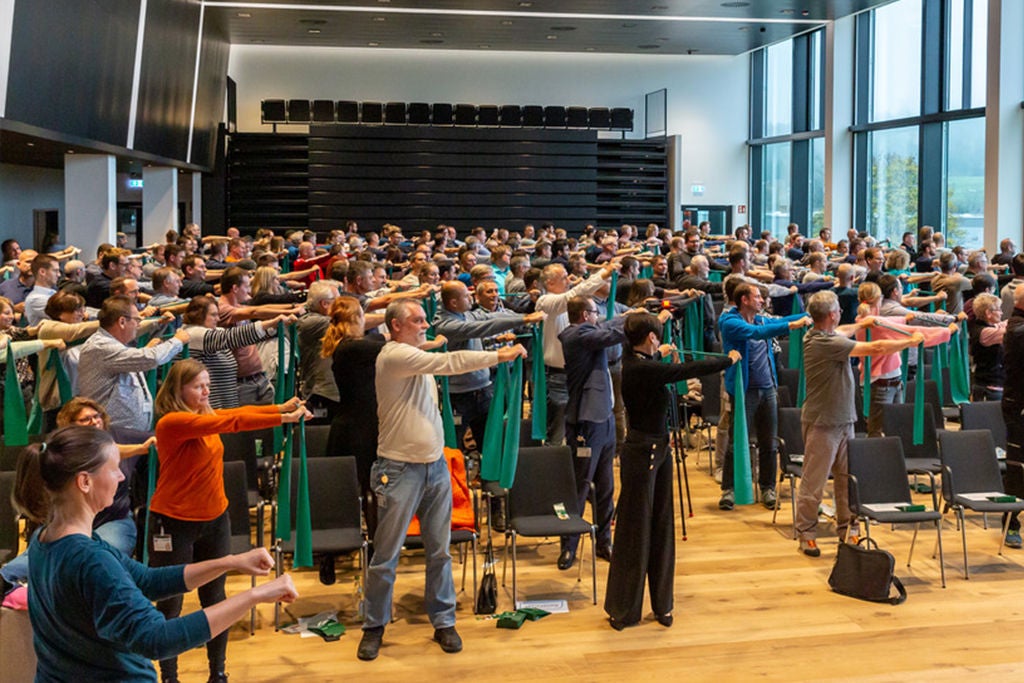 Ein Fachvortrag der AOK Bayern beschrieb, welche Bedeutung Bewegung für die Gesundheit hat und wie man durch erste Schritte mehr Bewegung integrieren und den inneren Schweinehund überwinden kann. In einer gemeinsamen Bewegungseinheit vermittelte Laura Dahlmeier dann einfach umzusetzende Tipps für den Berufsalltag, um gesund und fit zu bleiben.