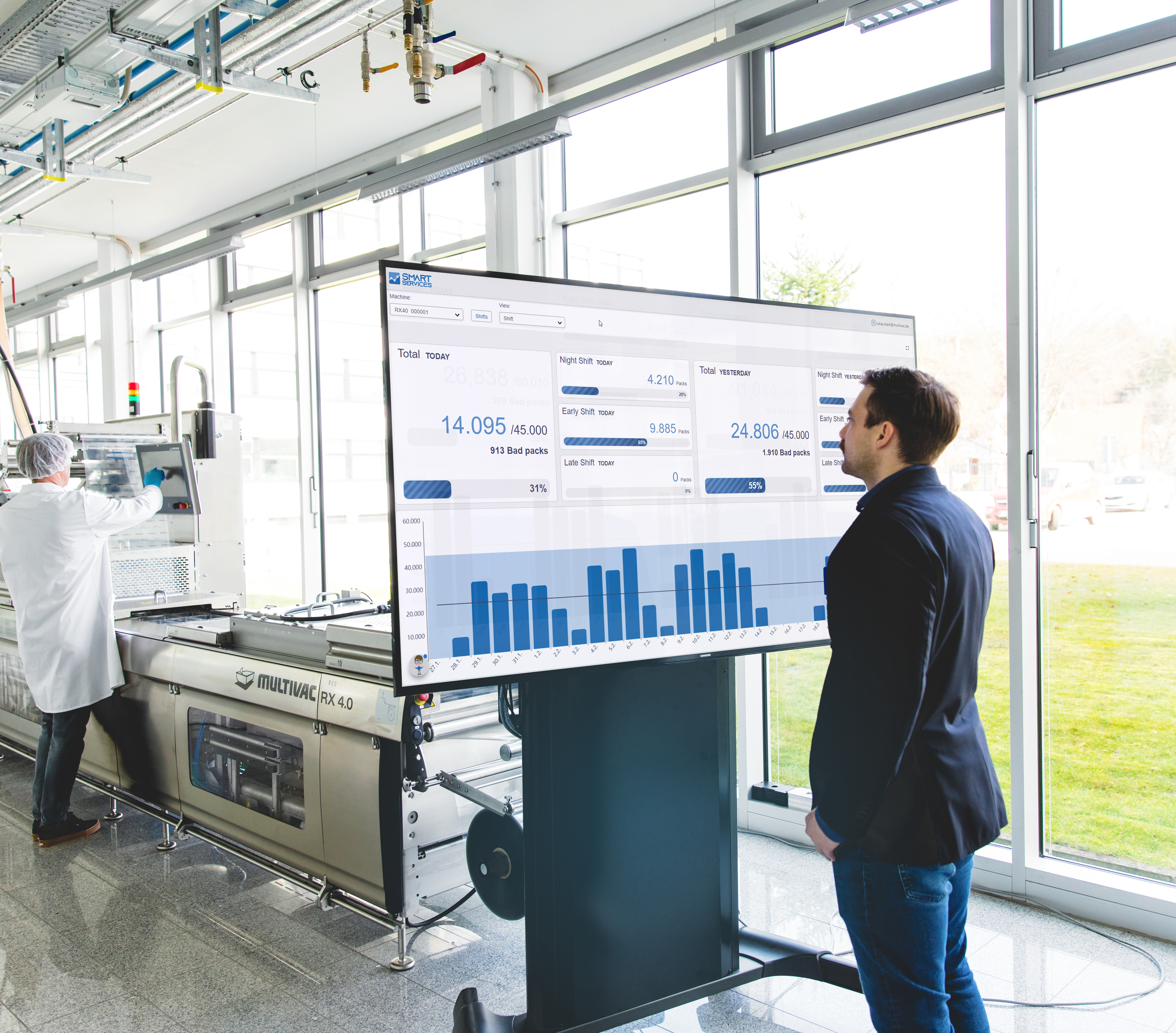 MyMULTIVACカスタマーポータル、MULTIVACスマートサービス、MULTIVACラインコントロールを開発しました。そのため、MULTIVACはIndustry4.0時代に簡単に進出することができ、常に拡大するインテリジェントアプリケーションの可能性を提供します。