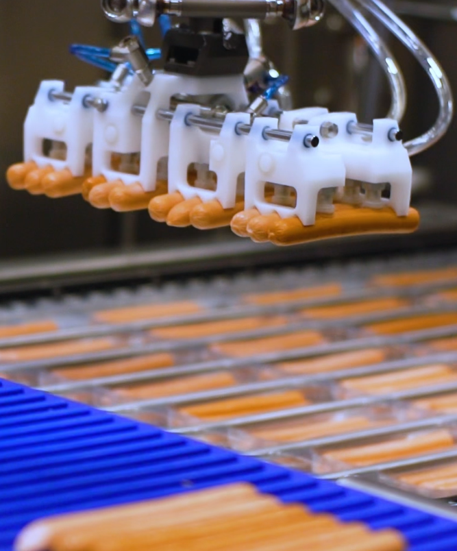 Centrifuge Feeder es una solución de alineación eficiente cuidadosa para la alimentación de productos. Es particularmente adecuada para productos rectos y uniformes, como las salchichas.